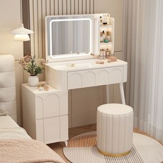[상품 더보기]8. Montheria 화장대 삼색가변 수납화장대 간략하다 소형 주택 조명화장대 C395-112, 80CM, 화이트+꽃잎스툴